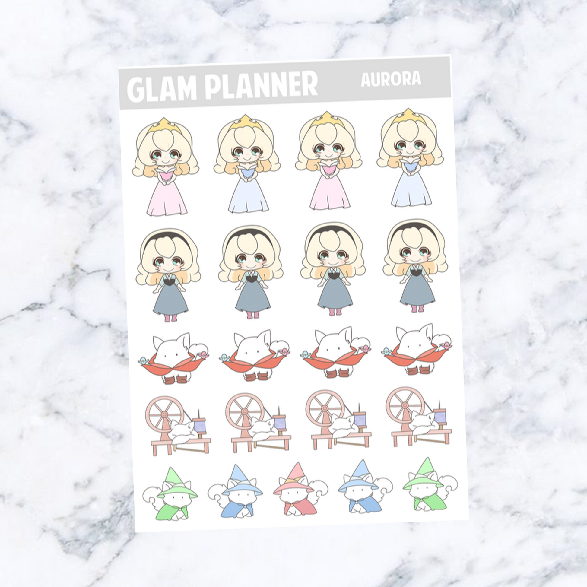 This listing is for one sheet of kiss cut stickers, as shown in the picture. The sticker sheet is approximately 2.5 inches by 3.5 inches big. These stickers are printed on glossy paper.