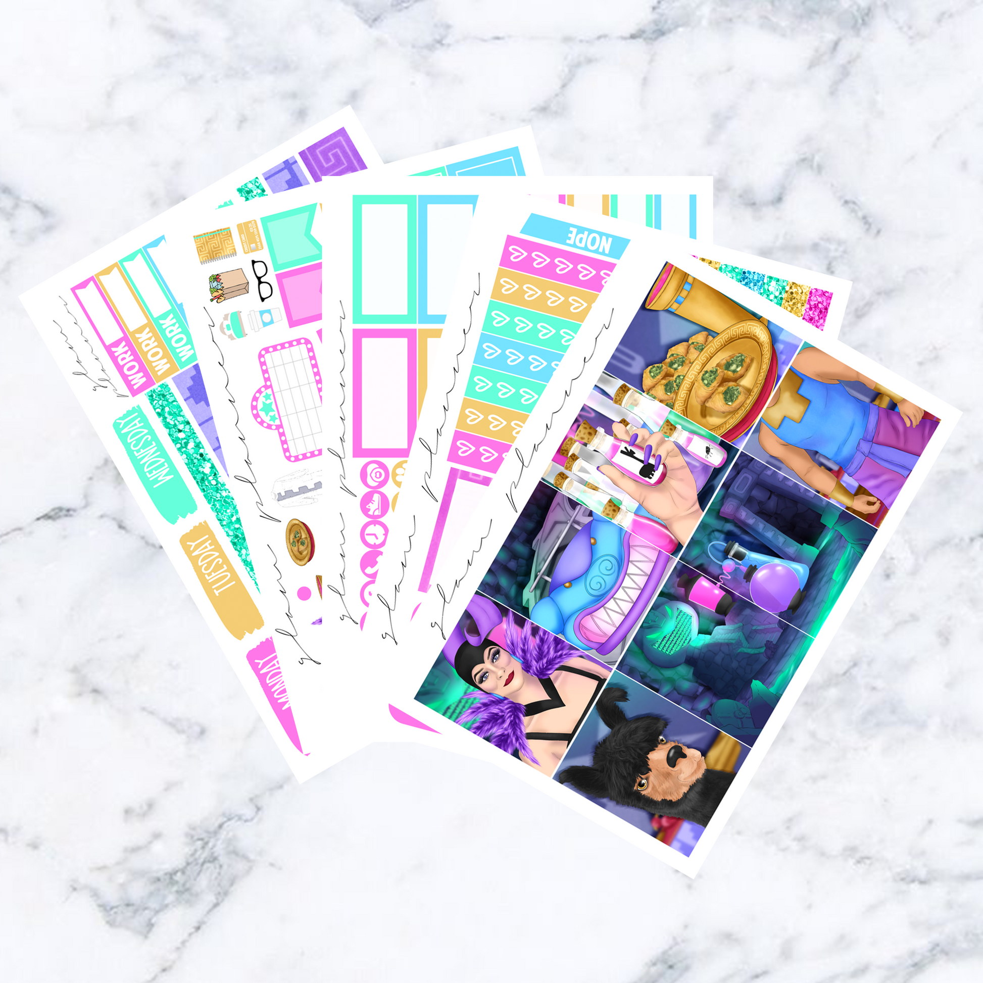 Includes stickers featured in the pictures. These stickers are printed on glossy paper.